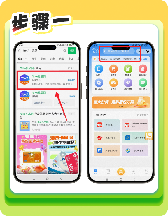 步骤(1):打开手机应用商店、微信或百度都行,搜“70KA礼品网”,找到官方入口后,在回收主页里找到搜索框。